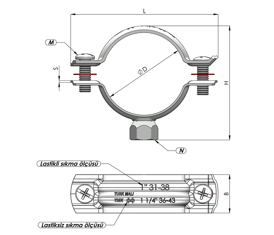 | PRODUCT CODE | SIZE | CLAMPING RANGE (MM) | M | SxB (MM) | N | QUANTITY PER BOX | BOX WEIGHT (KG) |